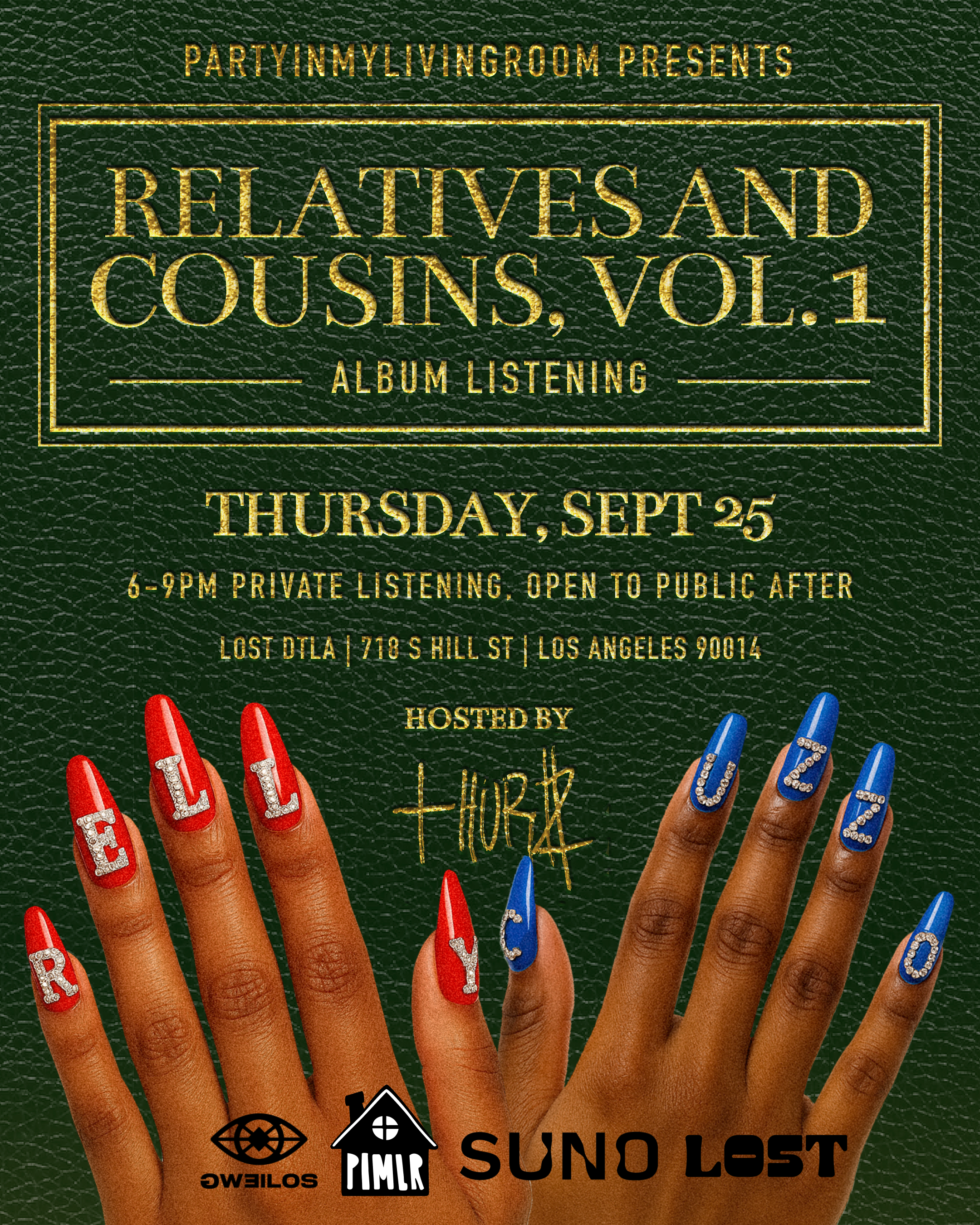 Join us this Thursday at 6PM at Lost DTLA for an exclusive listening session of Relatives & Cousins, Vol. 1, the new double album from Party In My Living Room.
